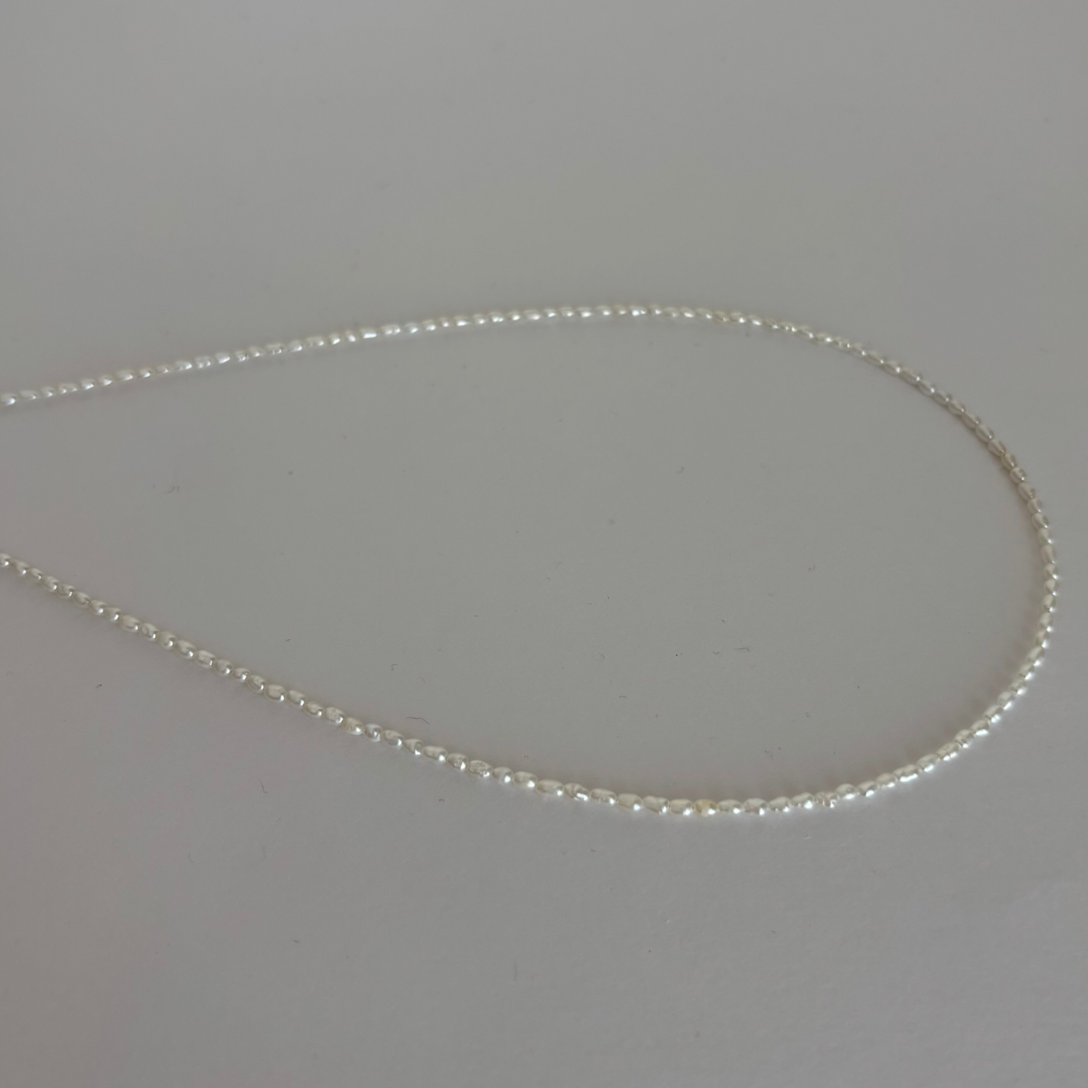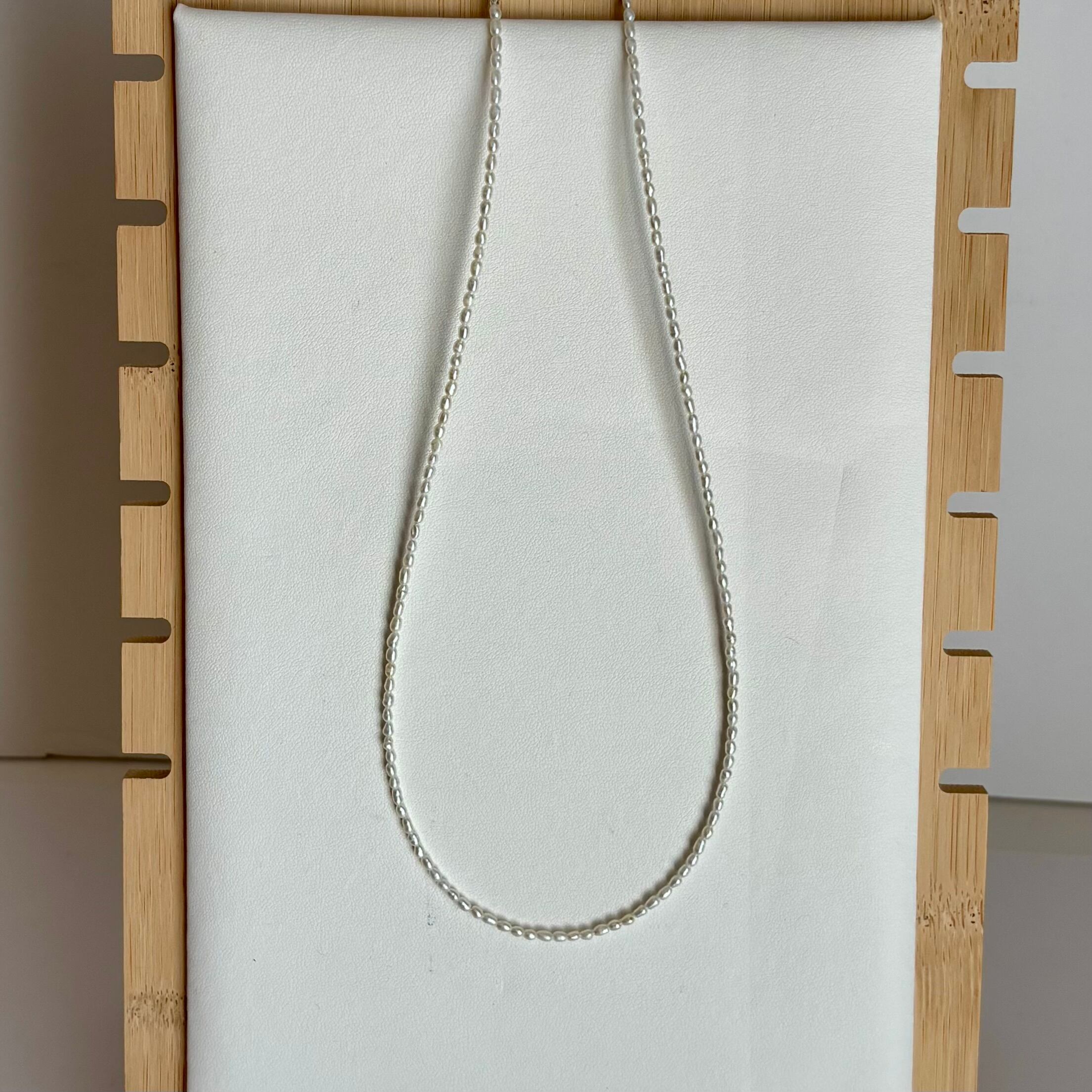 繊細に連なった淡水パールは、しなやかな光を放ち、シンプルながらも深い存在感があります。特別なイベントはもちろん、普段使いでも品格を感じさせるアイテムであり、幅広いスタイルに調和します。パールのやわらかなトーンは、肌馴染みがよく、どなたにも似合うデザインに仕上げました。